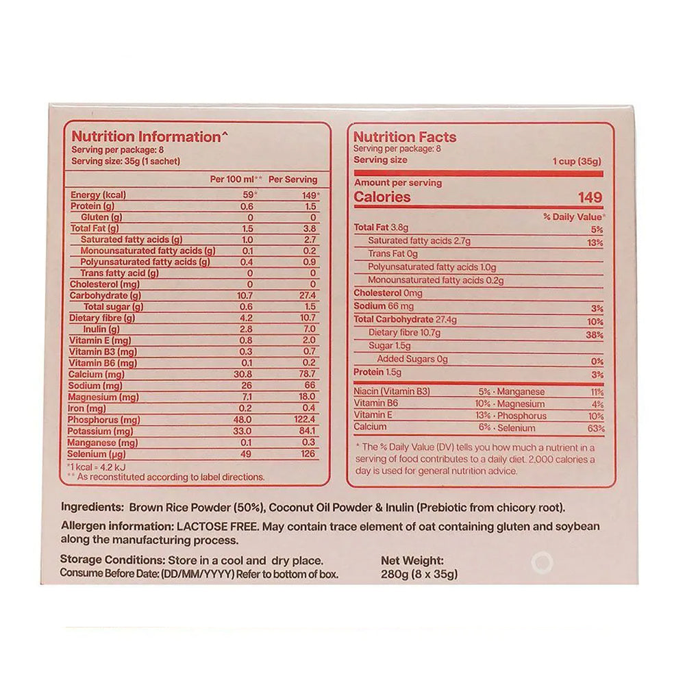 NUTRIbrown RICE - Instant Brown Rice Prebiotic Drink (Original/No added Sugar) 280g (35gX8)
